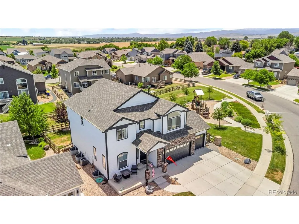 Welcome to 585 Canyonlands Street, a stunning 5-bedroom, 3.5-bathroom residence built in 2016 and exquisitely maintained in the desirable Heritage Ridge neighborhood. Offering 3,452 square feet of luxurious living space, this home seamlessly blends modern farmhouse charm with contemporary functionality . From the moment you arrive, the thoughtfully landscaped exterior and inviting front porch set the tone for a warm, welcoming experience. Inside, you'll discover vaulted ceilings, beautiful reclaimed barnwood accents, a spacious chef's kitchen with stainless appliances and a butler's pantry, and a cozy living room anchored by a gas fireplace. The upper level features a serene primary suite with cathedral ceilings, an elegant ensuite, and a loft area perfect for lounging or as a flexible workspace. Two additional bedrooms and a full bathroom complete the upper floor layout . The daylight basement adds tremendous value with two more bedrooms, a full bathroom, and a generous rec space ideal for media nights, a gym, or guests. Enjoy seamless indoor-outdoor living thanks to the brand-new $25K patio installed beneath the deck, ready for alfresco dining, morning coffee, or evening relaxation. You'll love the unbeatable location-this home backs directly to a park and is just a short stroll from the community pool, putting recreation right at your doorstep. Perfectly positioned in a vibrant community near trails, schools, downtown Berthoud, and major commuter routes, this modern farmhouse-style home offers style, comfort, and location-truly the best of Berthoud living. Don't miss this exceptional opportunity-schedule your private showing today and fall in love with 585 Canyonlands Street!